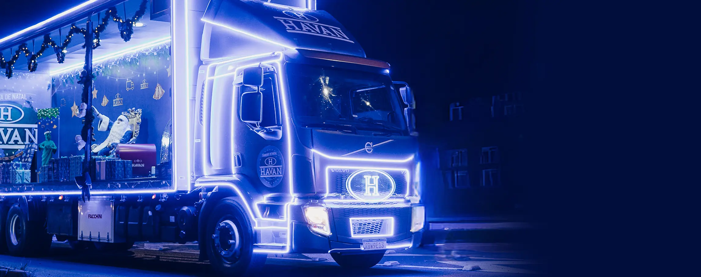 A Carreata de Natal Havan é uma ação realizada pela varejista como forma de presentear as cidades em que está inserida. São três caminhões iluminados com LED e Back Light que desfilam nas principais avenidas dos municípios selecionados, ao som de músicas natalinas. A iluminação é sincronizada com o ritmo das canções. Como em outras edições, o Papai Noel Havan acompanhará a Carreata com sua roupa exclusiva azul, em referência à cor da marca Havan, que faz muito sucesso por onde passa. Com a ação, a Havan busca levar o espírito natalino às ruas e encher os corações de esperança nesta época tão especial do ano.