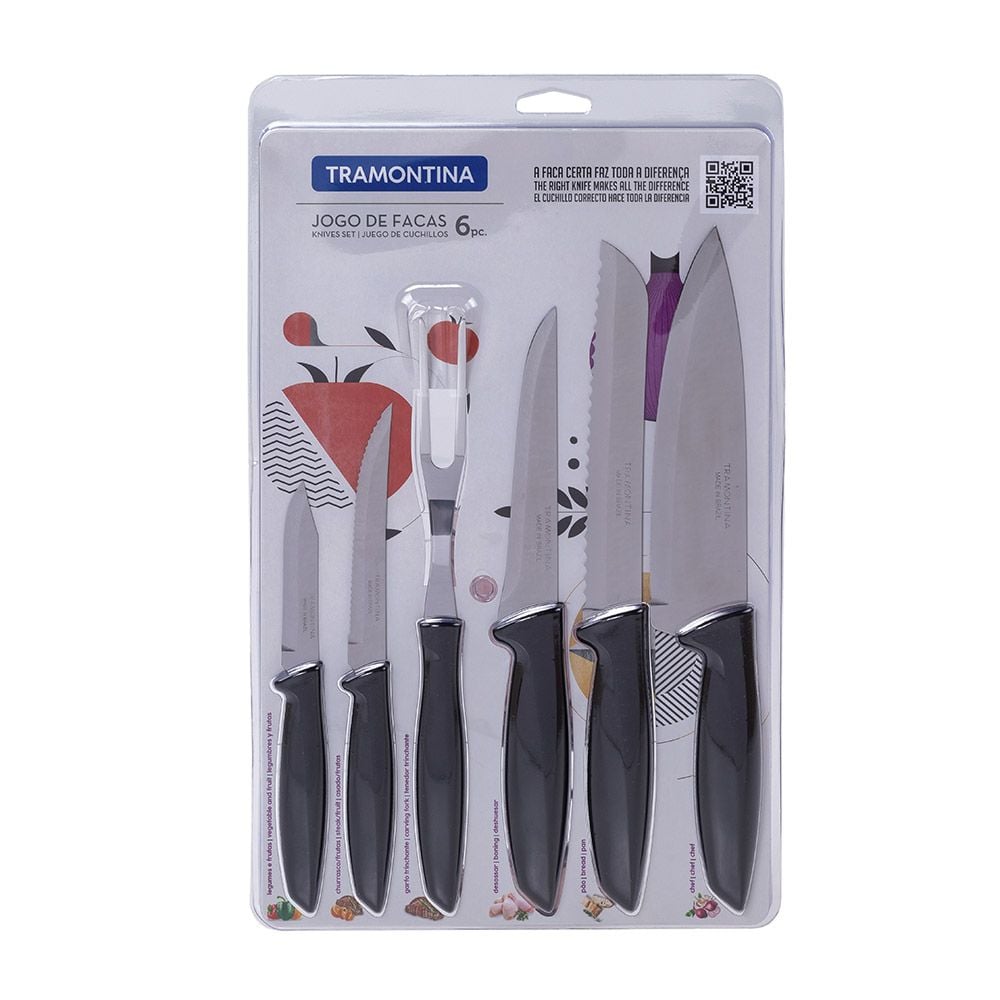 Jogo De Facas Inox Plenus Pre 6 Peças Tramontina - Preto